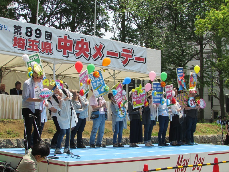第89回埼玉県中央メーデーは5月1日(火)、さいたま市の北浦和公園で開催され、1800人が参加しました。SUはさいたま市在住者を中心に17人が参加。地域メーデーが開催されるところは最寄りの地域メーデー参加となりました。